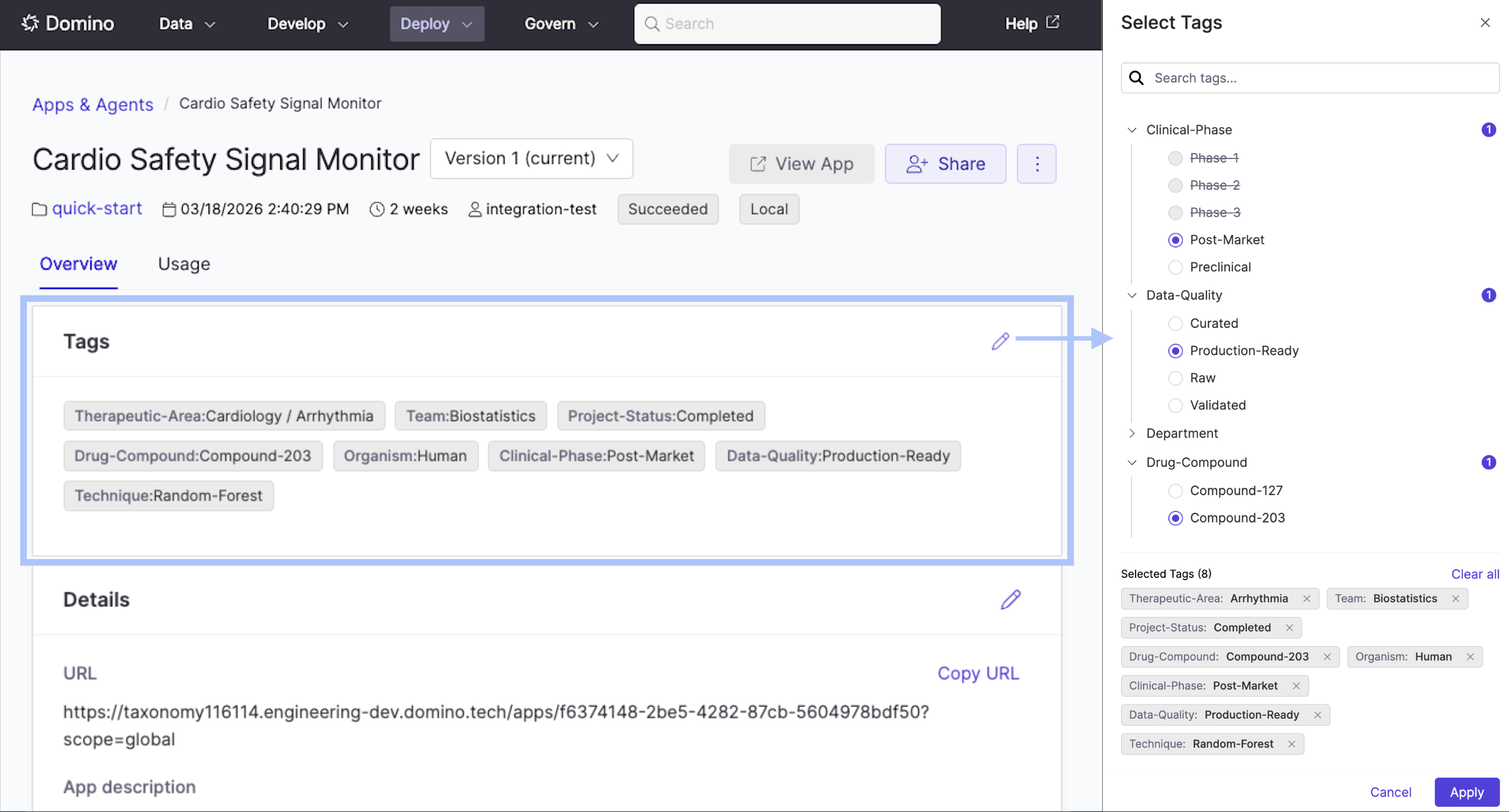 | If a namespace is configured to allow only one tag per entity, selecting a new tag replaces the existing one. |